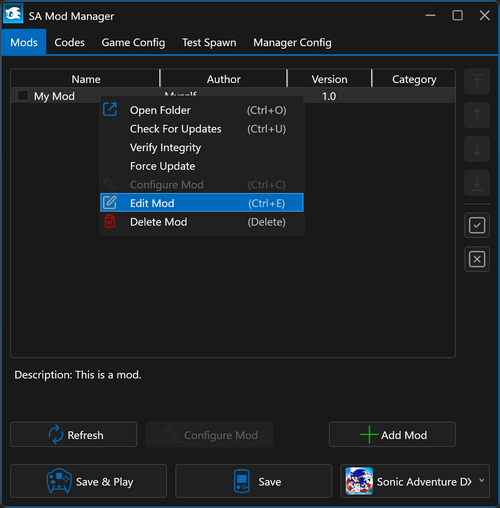 Using the SA Mod Manager