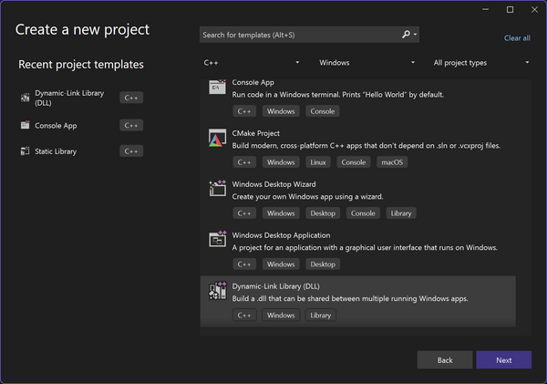Now that Visual Studio is installed, we need to make a C++ DLL project.