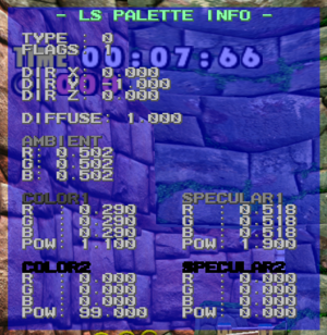 When the Lantern Engine mod is disabled, this screen shows LS Palette (vanilla character lighting) information. You can cycle through currently active character lights by pressing H.