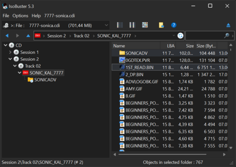 If your game is in the CDI format, you can use the trial version of ISOBuster to extract it. Open the CDI file in the program, select the session on the left and the files on the right. Make sure you've selected the file 1ST_READ.BIN and the SONICADV folder. Usually these are found in Session 2 Track 02. Sometimes the SONICADV folder is also located on Session 1 Track 01. Extract both tracks in that case. If the folder is named SONICAD, you have the wrong version of the game.