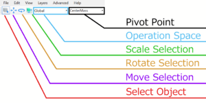 SALVL uses a feature called a Transform Handle for manipulating the selected stage objects. The transform handle resides in the 3D viewport and is directly manipulated by the mouse, using a click and drag action.