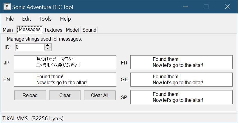 The Export option in the File menu lets you export the VMS file as a folder that can be loaded by the Dreamcast DLC mod in the PC version of SADX. The Import option allows to load exported data back into the editor.