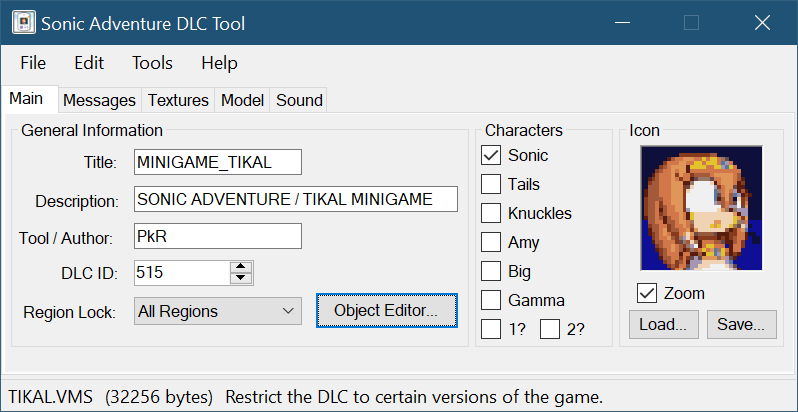 This tool lets you edit and create your own downloadable content for Sonic Adventure on the Dreamcast. The DLCs created with this tool can be played on real Dreamcast hardware without hacking the base game.