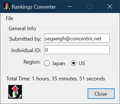 World Rankings data contains a complete savegame slot which includes the original save file checksum, story progression data and game settings. To convert this data to an actual save file, select the region in the General Info box and click File->Save As.... You can place the converted file on the VMU and load it as a regular savegame, or edit it in SASave.